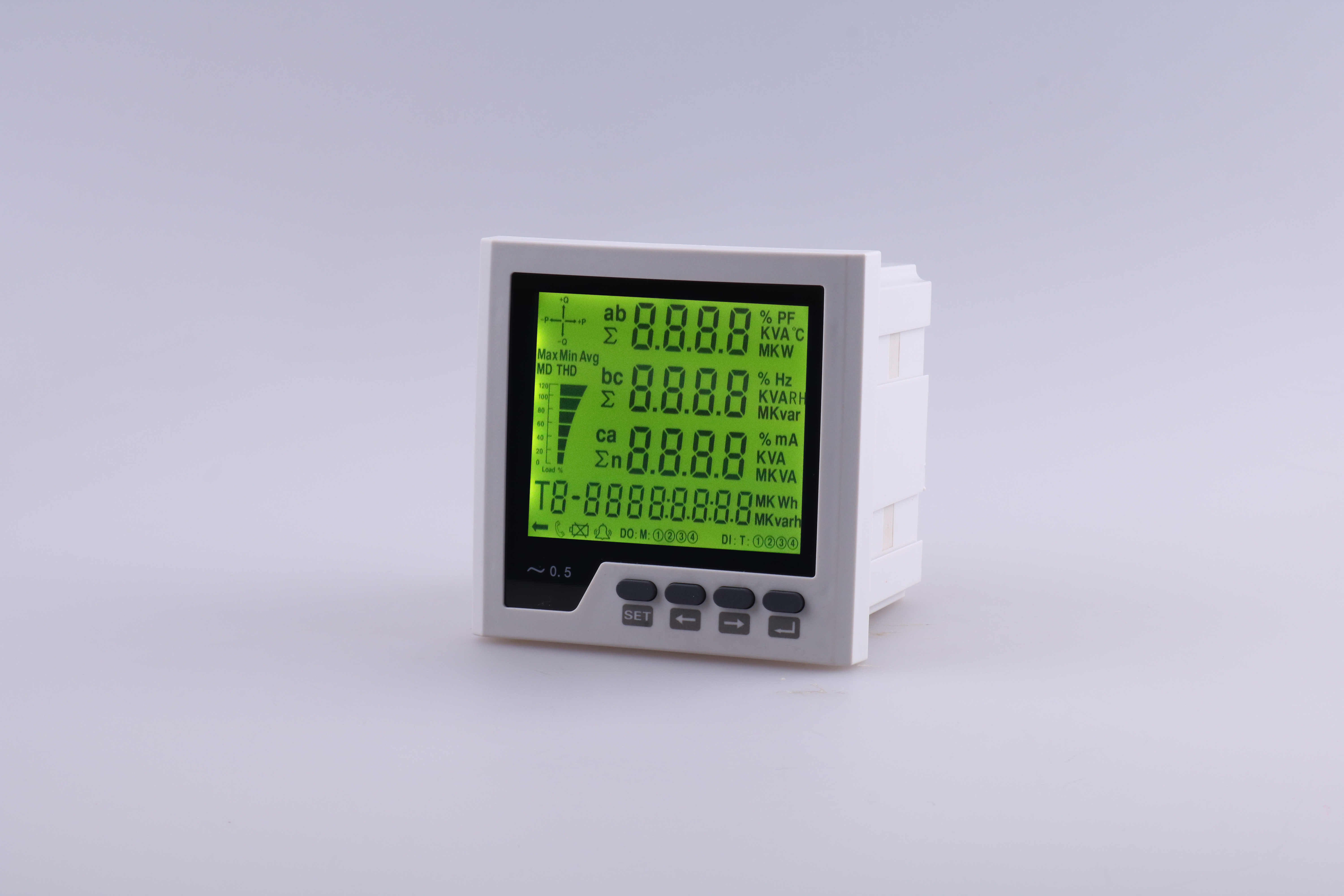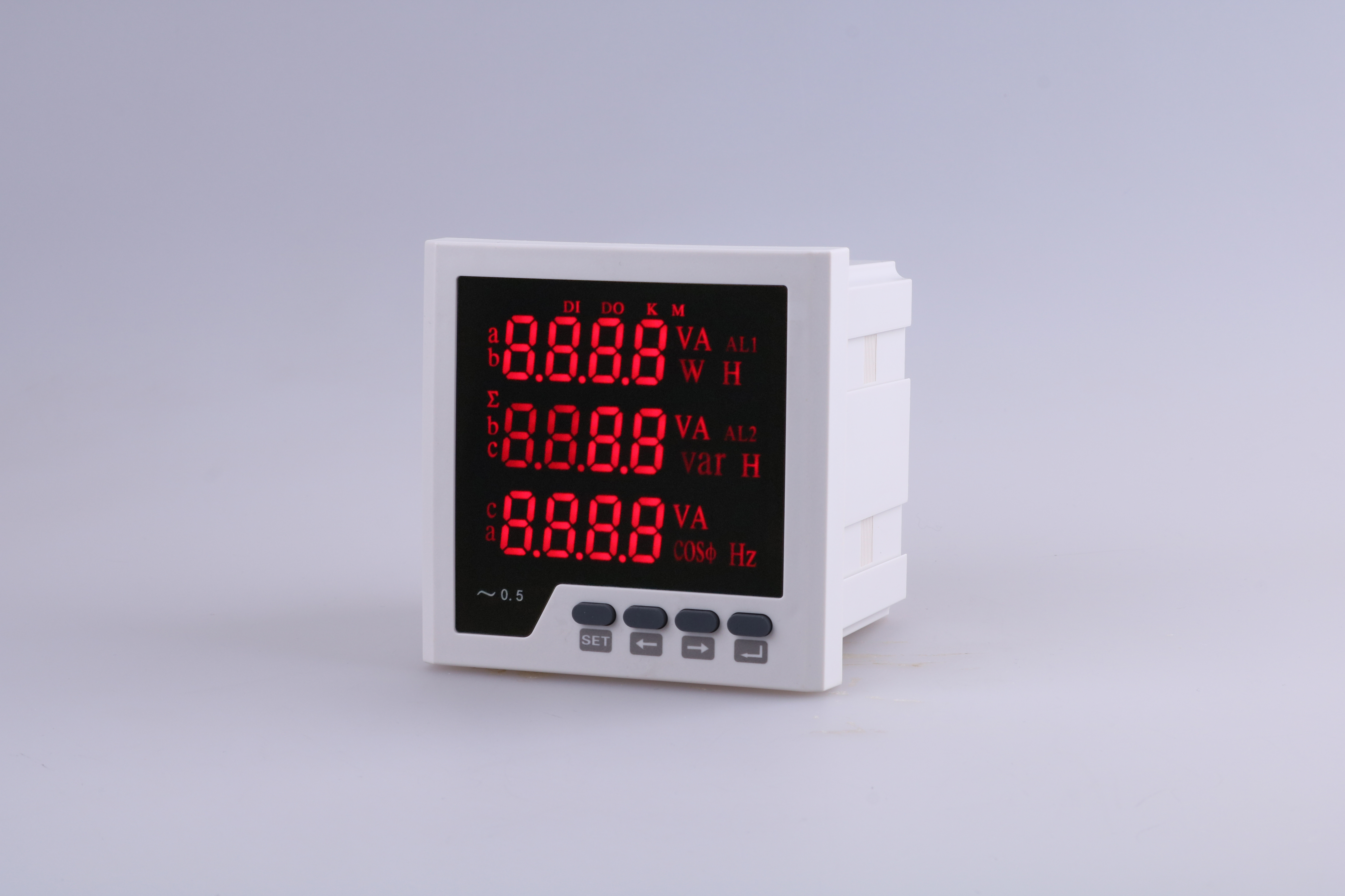 多功能电力仪表是自主研发时一种具有可编程测量、显示、数字通讯和电能脉冲变送输出等多功能智能仪表,能够完成电量测量、电能计量、数据显示、采集及传输,多功能电力仪表广泛应用变电站自动化、配电自动化、智能建筑、企业内部的电能测量、管理、考核。测量精度为0.5级,实现LED现场显示和远程RS-485数字接口通讯,采用通讯协议。